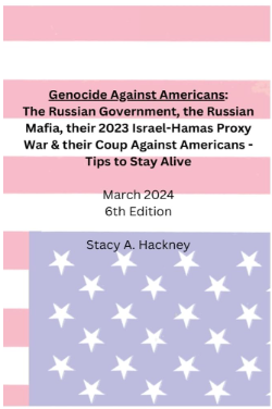 My name is Stacy A. Hackney. I'm a middle age African American woman who has been attacked by the USSR & Russian Mafia-controlled American operatives in America since I was 11 in 1971. I'm a low income person & a first time writer. I wrote this book to help you survive. It's abit raw because I couldn't afford an editor & my control of tech is shaky, but it's an accurate picture of how the Russian Mafia is setting us up for a coup-genocide this November.